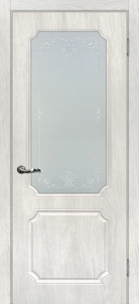 Качественная Межкомнатная дверь Сиена-4 Дуб жемчужный продается по цене 10 433 руб. за полотно. Доступные размеры 550x1900, 600x1900, 600x2000, 700x2000, 800x2000, 900x2000. Так же в наличии большой выбор комплектующих к данной модели, подходящих по цвету и фактуре.